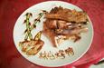 制作流程:将番鸭剖杀洗净,放入相关配料,注意火候进行烧烤