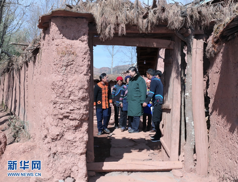 中华民族传统节日农历春节来临之际,中共中央总书记、国家主席、中央军委主席习近平来到四川考察调研,看望慰问各族干部群众,向全国各族人民致以美好的新春祝福。这是2月11日上午,习近平在凉山彝族自治州昭觉县三岔河乡三河村贫困户吉好也求家中看望。新华社记者 鞠鹏 摄