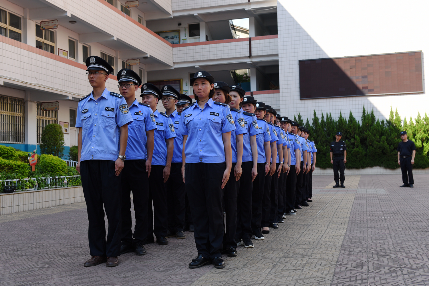为加强和规范警务辅助人员管理,增强辅警履行职责的能力,提高辅警队伍的整体素质,在开展大学习大调研大培训活动中,福建省政和县公安局开展辅警集中集训活动并举行授予层级标识仪式。图为7月20日,教官在对辅警进行整装、敬礼等队列动作训练。(郑恭轩)