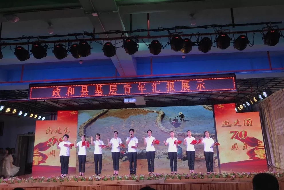 6月30日,由中共政和县委组织部 、政和县直机关党工委、共青团政和县委员会、政和县妇女联合会、熊山街道党工委主办,政和泰隆村镇银行、福建省政和文旅发展有限公司、各乡(镇)党委协办的“不忘初心 牢记使命 扎根基层 奉献青春”政和县基层青年汇报展示演出在政和县第二实验幼儿园举办。 县委常委、总工会主席张华,县委常委、组织部部长陈德文,县政府副县长裴俊巍,县政协副主席范雅凤,县直机关、各乡(镇、街道)等单位领导以及基层党群工作者、选调生、村官、三支一扶、大学生志愿者等观看演出。 基层青年们唱自己改编的歌曲、跳自己编排的舞蹈、说自己编制的快板、朗诵自己撰写的诗词,表演自己情感的小品。为广大青年带来了一场精彩纷呈的视听盛宴,激励广大青年勇于下基层、敢于到基层中去,把基层作为对自己意志品格的磨砺,不忘初心、不改初衷,自觉把人生选择融入到党和人民的事业中去,在基层实践中经受考验、成长成才,让基层工作经历成为今后人生道路上的一笔宝贵财富。(许燕铃)  |