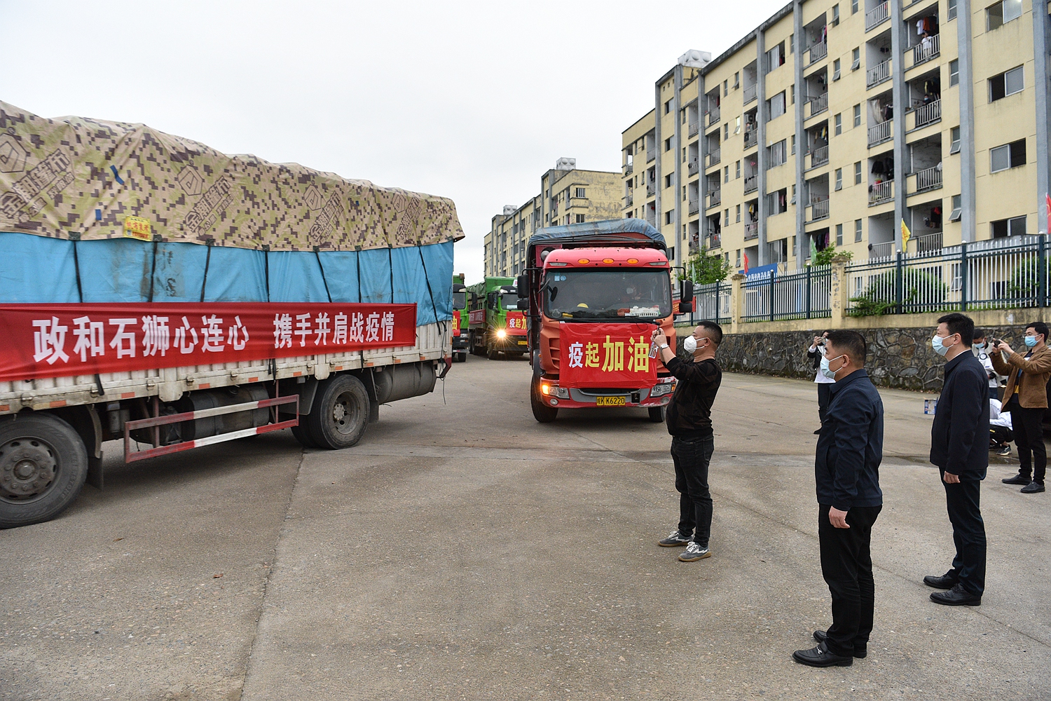 3月24日下午,政和县在经济开发区举行“政和石狮心连心 携手并肩抗疫情”捐赠物资启运仪式,县委书记黄拔荣、县长王丰参加仪式。