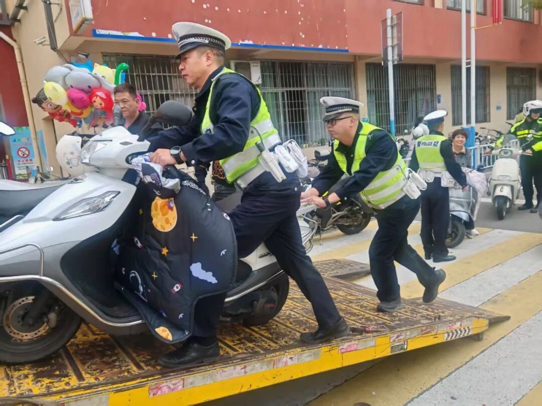 行动中,民警结合辖区实际情况,在重点路段、重点时段设立检查点,采取定点检查与流动巡查相结合的方式,严查二、三轮摩托车(电动车)违规停车、无牌无证、超员超载、不戴安全头盔、非法安装遮阳伞等交通违法行为。对严重交通违法依法处置,对轻微交通违法以教育劝导为主,实现“法律效果与社会效果”的有机统一。