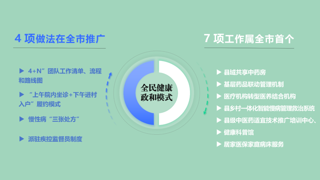 ▲“4+N”全民健康政和模式系列改革做法 基层群众享受“家门口”的优质医疗服务。67支“4+N”团队在固定时间、地点为基层群众提供“空白村巡诊+移动药房+移动诊所”服务,拓展家庭病床、慢性病“三张处方”等服务,定期到50个空白村、77个偏远自然村随访慢病患者,实现疾病“早预防、早诊断、早发现、早治疗”,老百姓“平时有人关心、就医不用操心、诊疗省钱又省心”。