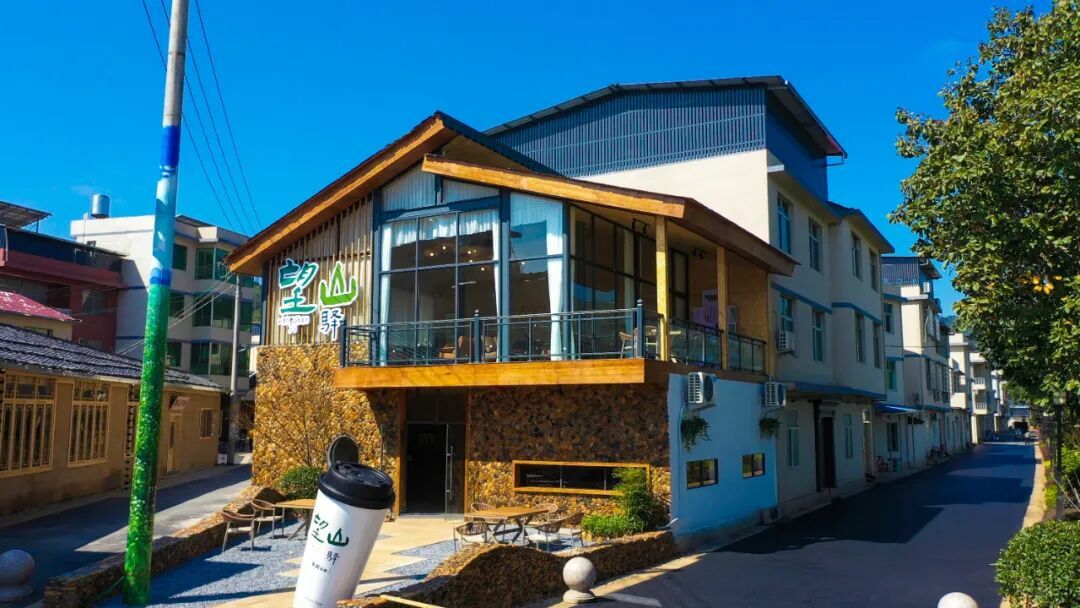 黄墙黛瓦、小巷蜿蜒......近日,走进政和县石屯镇王山口村,村口行道树整齐林立,柏油路平坦干净。一座融合石、木、竹与玻璃幕墙的建筑格外醒目,门前竖着座一人高的奶茶雕塑,设计感十足。