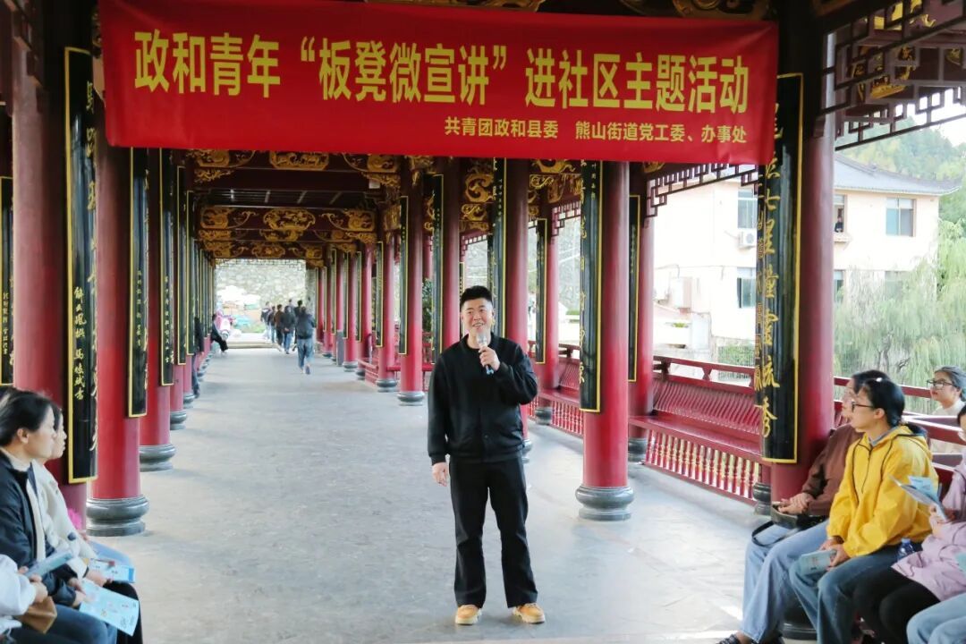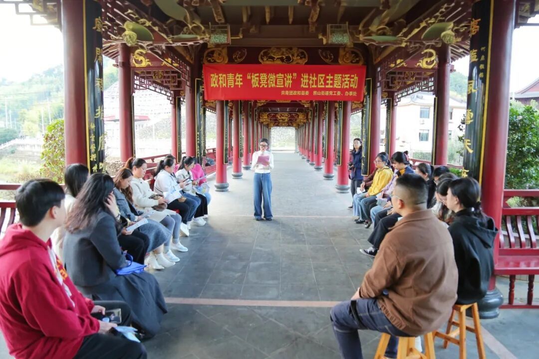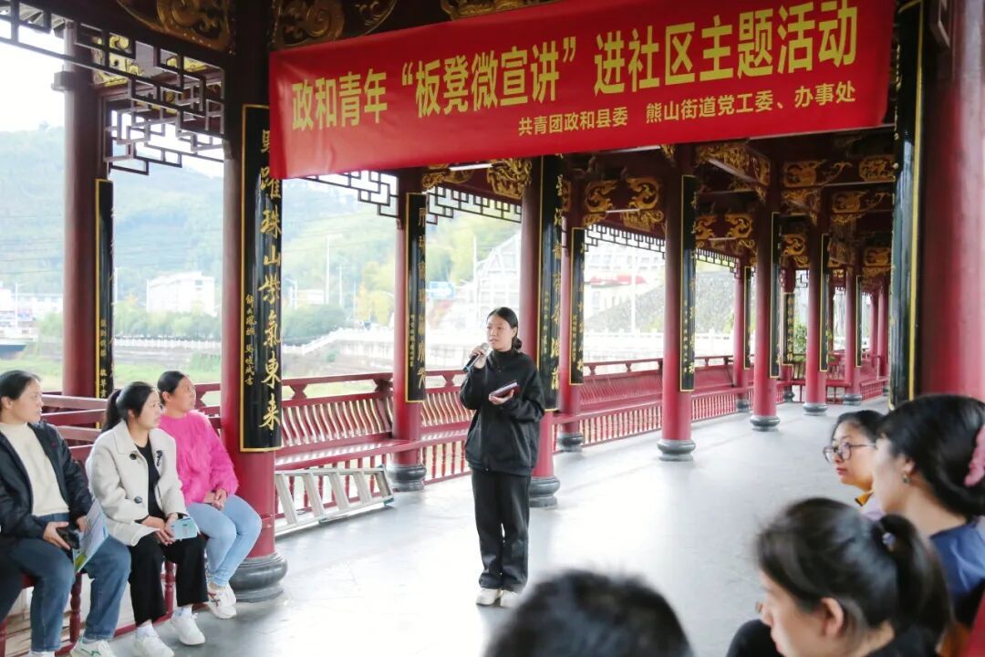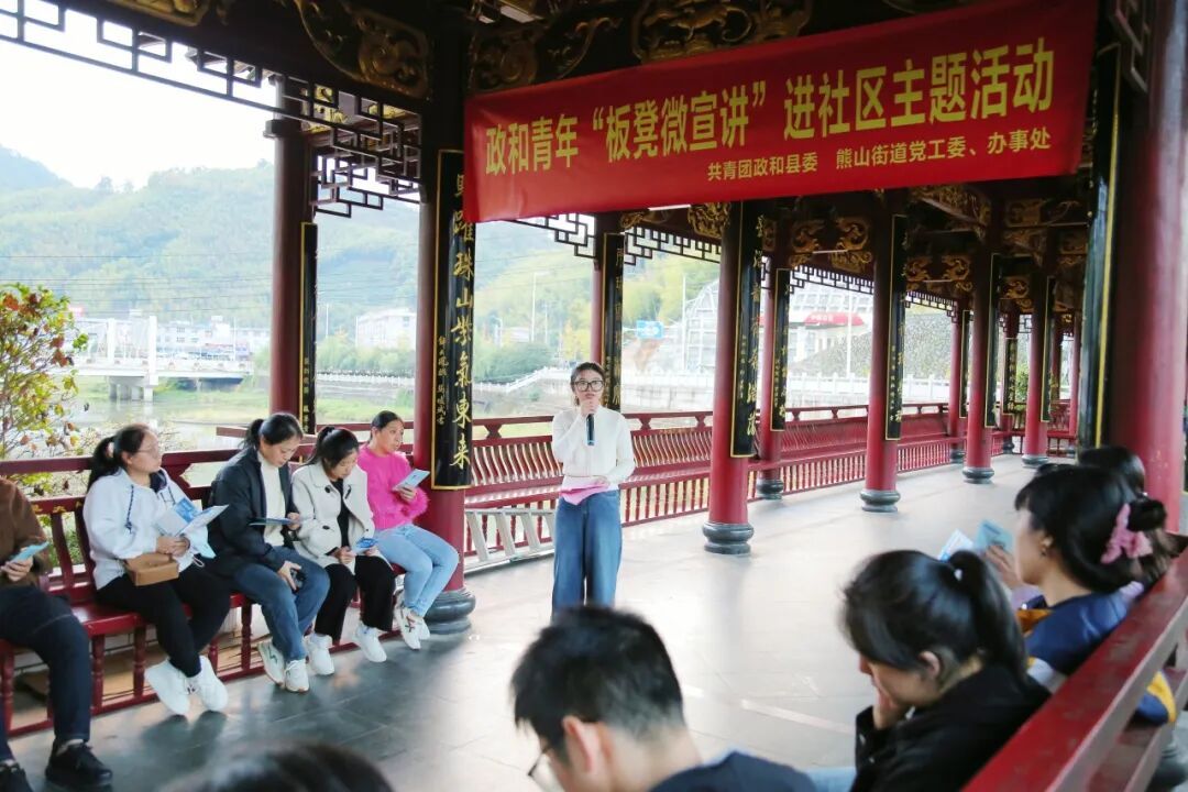 11月13日,政和团县委,熊山街道党工委、办事处在聚龙廊桥开展政和青年“板凳微宣讲”进社区主题活动。活动现场,20余名青年围坐一圈,聆听各领域宣讲员解读政策理论、分享青春故事。 “小政策”撬动“大梦想”