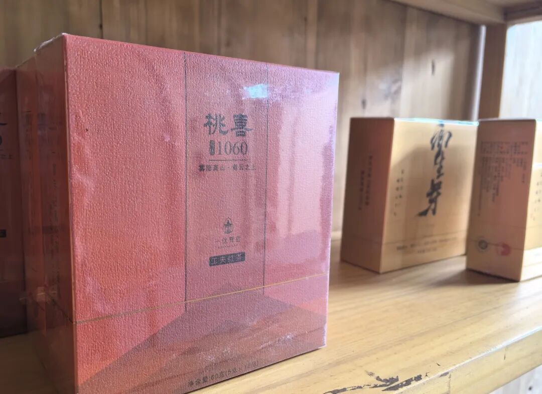 黄林鑫正在向直播间观众介绍茶叶。 明确品牌调性,活用自媒体渠道进行运营;优化包装设计,强调政和元素;将闲置老房翻修为茶空间,把自然风景变成“直播搭子”……经历两年的成长期,黄林鑫的“一位茶匠”品牌踏上直播电商的发展浪潮,直播间逐渐有了起色。现在,这个开在高山上的直播间每天都有百余名观众,每年营业额超400万元。有了这个稳定的销售渠道,周边茶农的茶青不再愁卖,黄林鑫每年还专门雇请村民帮忙收购运输茶叶,提供就业岗位。 “一位茶匠”将体现高海拔产区的“1060”作为包装设计要素。