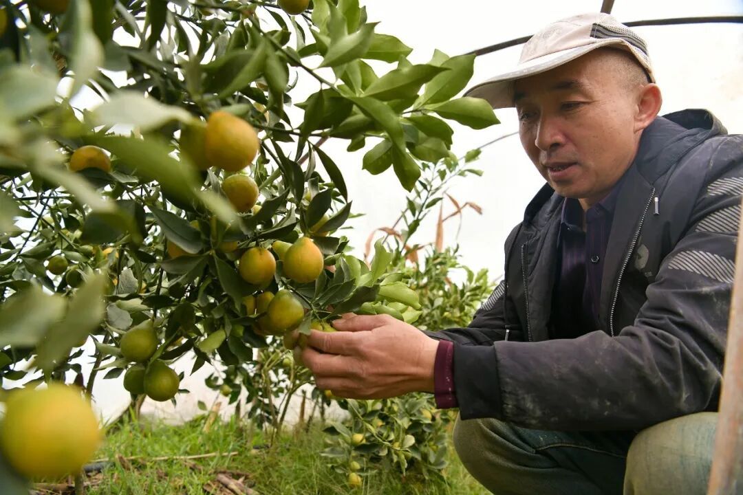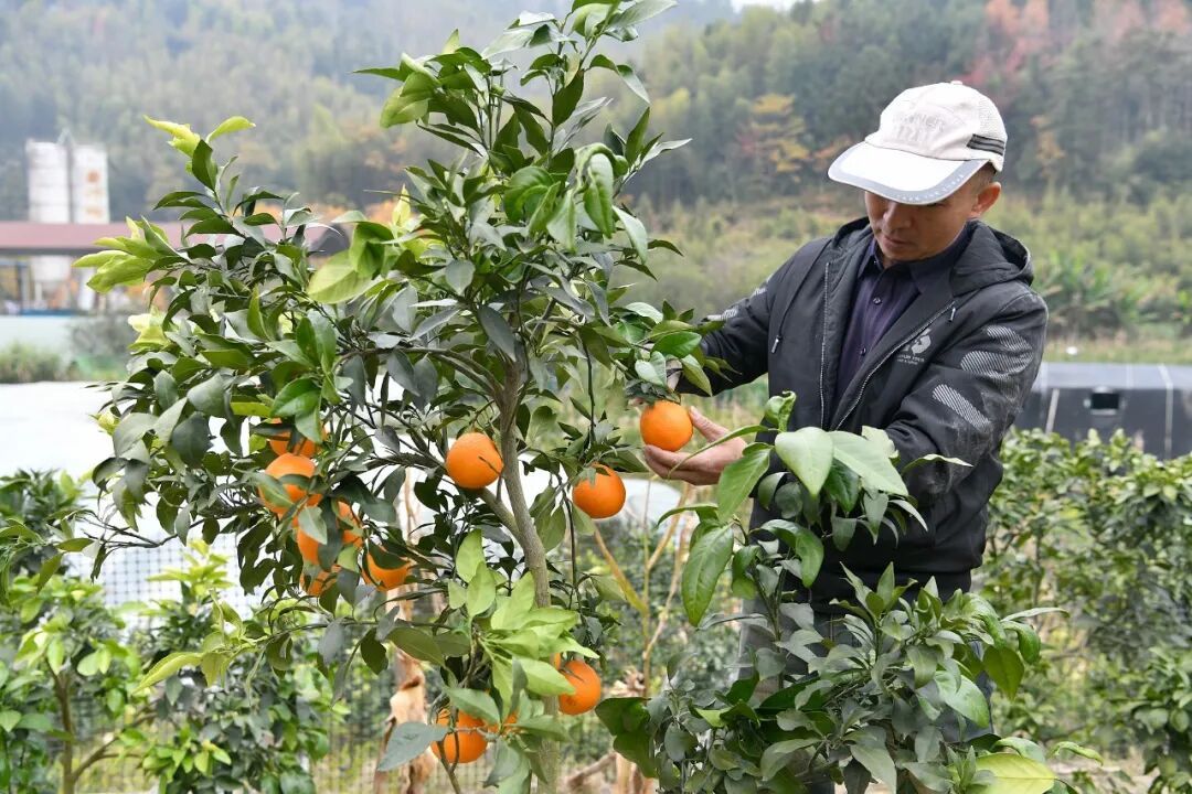 12月5日,在星溪乡地坪村南坑自然村的政和县天盈种养殖家庭农场果树种植基地,已经成熟的果子压弯了枝条;基地的另一边,金灿灿的红美人柑橘也进入采摘季节。