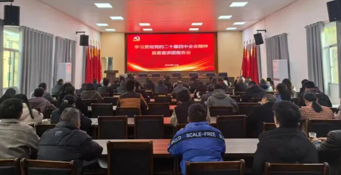 连日来,学习贯彻党的二十届四中全会精神县委宣讲团到政和各地开展宣讲,从深入学习领会党的二十届四中全会的基本情况、起草过程和重大意义,深刻认识“十五五”时期在基本实现社会主义现代化进程中具有承前启后的重要地位,准确把握“十五五”时期经济社会发展的指导方针、主要目标和战略任务、重大举措,紧密结合学习贯彻习近平总书记在福建考察时的重要讲话精神以及政和当前工作实际等方面进行系统阐释和深入浅出的讲解,推动全县迅速兴起学习宣传贯彻党的二十届四中全会精神的热潮,引导广大党员干部把思想和行动统一到全会精神上来,在“学深”上下真功,在“悟透”上求真知,在“做实”上见成效,凝聚起推动政和高质量发展的强大合力。 澄源乡 12月9日,学习贯彻党的二十届四中全会精神县委宣讲团到澄源乡开展宣讲。县委宣讲团成员、县工信商务局党组书记、局长程东明作宣讲报告。