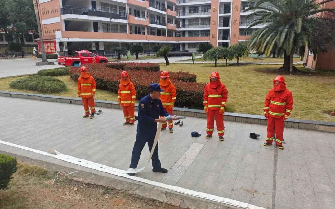 培训环节,消防宣传人员先对学校微型消防站工作人员开展专项强化训练,重点指导原地着装、快速连接水带、设置水枪阵地等实操技能,夯实校园消防应急 “第一道防线”。随后,结合校园火灾典型案例,从电动自行车规范停放与充电、教室及宿舍电器安全使用注意事项等,用通俗易懂的语言为师生们系统讲解消防安全常识。同时通过实物展示与实操演示,详细介绍了灭火器、消防自救呼吸器等常见消防器材的构造与正确使用方法,让师生们直观掌握核心技能。