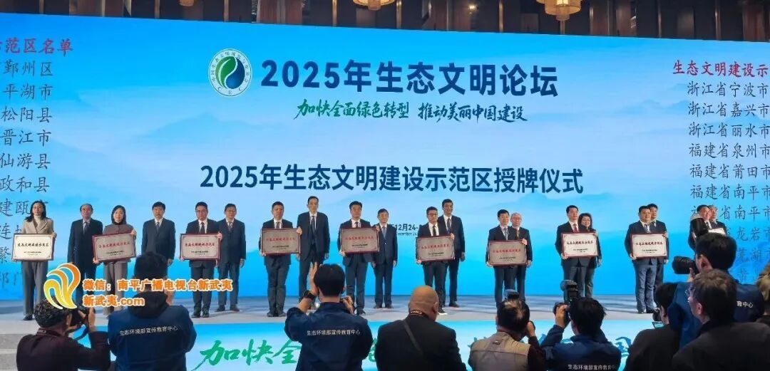 12月25日上午,政和县被生态环境部正式命名授牌“2025年生态文明建设示范区”。