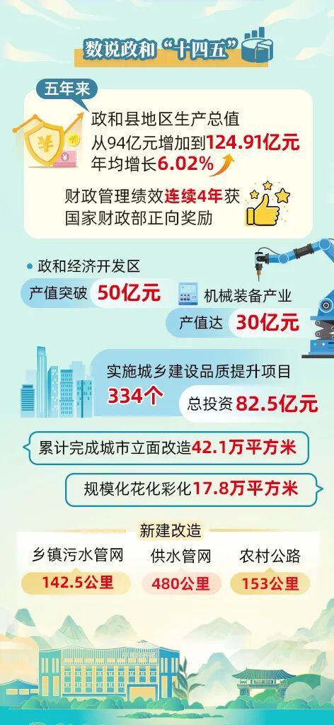 闽浙边界,群山叠翠间的政和县,正以绿色为笔、实干为墨,铺展一幅新时代高质量发展的壮丽画卷。“十四五”以来,政和县全面贯彻新发展理念,主动服务和融入新发展格局,锚定绿色发展主线笃定前行,交出了一份含金量十足的成绩单:地区生产总值从94亿元跃升至124.91亿元,年均增长6.02%,历史性突破“百亿”大关实现跨越式发展;财政管理绩效连续四年斩获财政部正向奖励,成为县域经济提质增效的生动注脚。 一幅生态美、产业兴、城乡靓、百姓富的现代化图景,在这片充满活力的土地上愈发清晰可感。