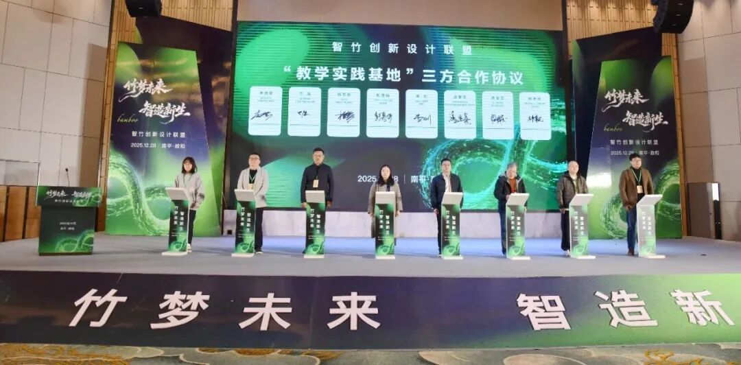 大会上,进行了国家碳计量中心(福建)—林竹分中心揭牌、联盟各代表成员共同签订“智竹”创新设计联盟成立协议、政和县人民政府与高校代表签署共建“教学实践基地”三方合作协议以及设计师代表与企业代表进行意向合作协议签约等环节。