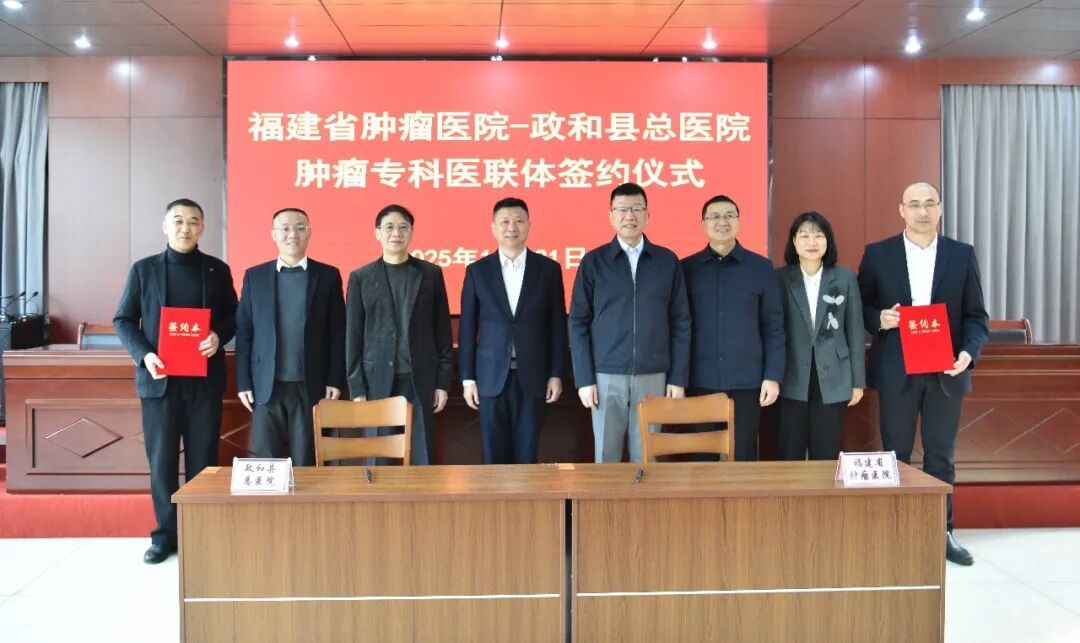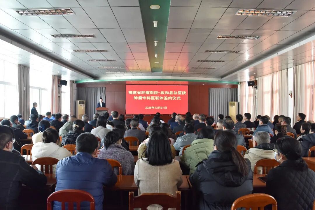 12月31日,福建省肿瘤医院与政和县总医院医联体签约、授牌,刘景丰肿瘤防治名医团队工作室揭牌暨义诊、学术交流系列活动在政和县总医院同步开展。福建省肿瘤医院党委书记刘景丰、副院长方主亭,南平市卫健委党组书记、主任黄水彪,县长王丰,县委常委、统战部部长游美君,副县长陈夏等参加活动。