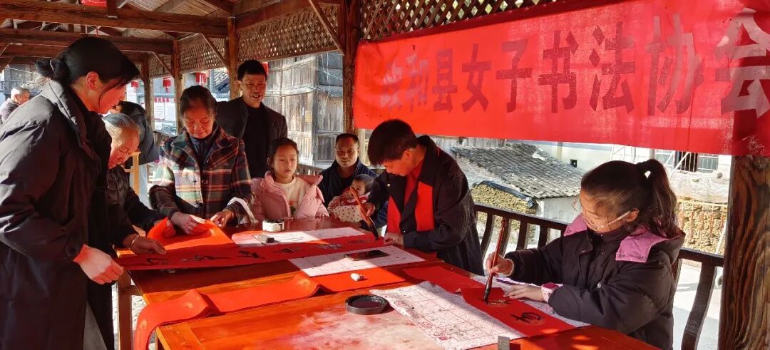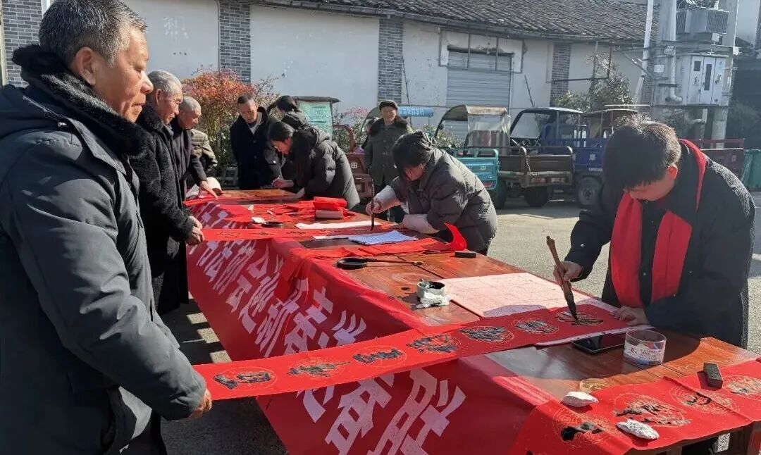 2月3日,杨源乡邀请县女子书法协会及坂头村文化特派员到乡集镇、坂头村等地开展“迎新春,送春联”活动。将满满的福气送到群众身边,为即将到来的马年新春增添浓厚喜庆氛围。 活动自上午九点开始,便吸引了众多村民前来。大家有序排队,一边精心挑选寓意美好的对联词句,一边主动帮忙铺纸、晾晒,现场暖意融融,笑语不断。 村民们纷纷表示,这些手写春联笔力遒劲、寓意深厚,比市场上购买的印刷品更有温度,也更有年的味道。