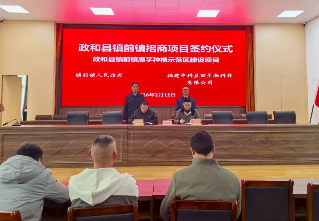 2月12日,镇前镇人民政府与福建中科益田生物科技有限公司正式签署合作协议,携手推进政和县镇前镇魔芋种植示范区建设项目落地,标志着该项目进入实质落地阶段。