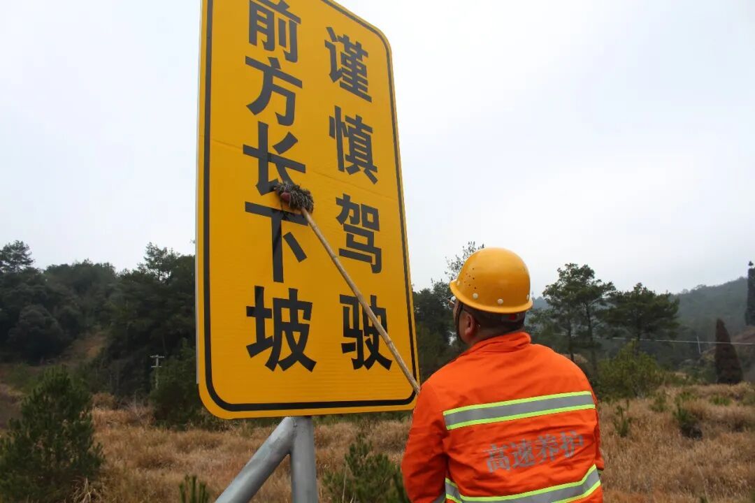 在政和至杨源高速路段,检查人员采取徒步巡查与车辆巡查相结合的方式,对全线桥梁、隧道、易结冰路段及事故易发点等关键区域开展全方位排查。排查过程中,工作人员重点核查路面护栏、标志标线、隔离栅等交通安全设施的完好状况,对标识标牌进行全面清洁,对专用应急车道进行养护清理,及时清除安全隐患,确保道路硬件设施始终处于安全可靠状态。同时,针对冬季低温雨雪冰冻天气多发的特点,南平高速政和养护站提前备齐融雪剂、防滑沙、除冰设备等各类应急物资,确保遇到突发情况能够快速响应,全力防范化解各类道路安全风险。