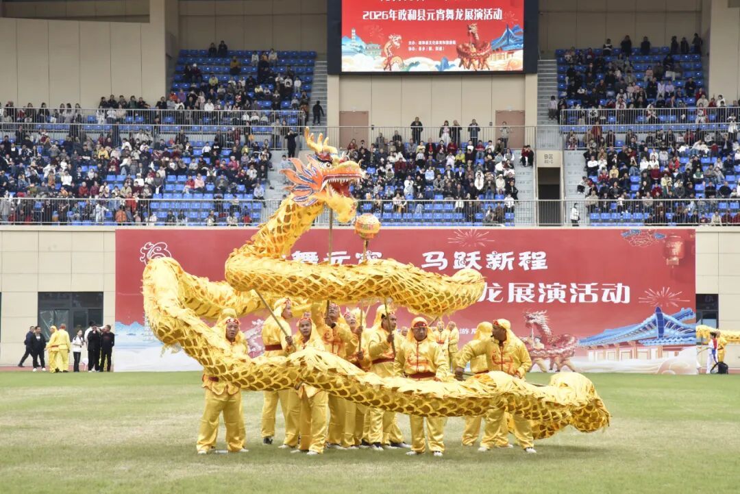 3月3日,政和县“龙舞元宵 马跃新程”舞龙展演活动在廖俊波体育中心举行,来自全县各乡镇(街道)的10支队伍参演。