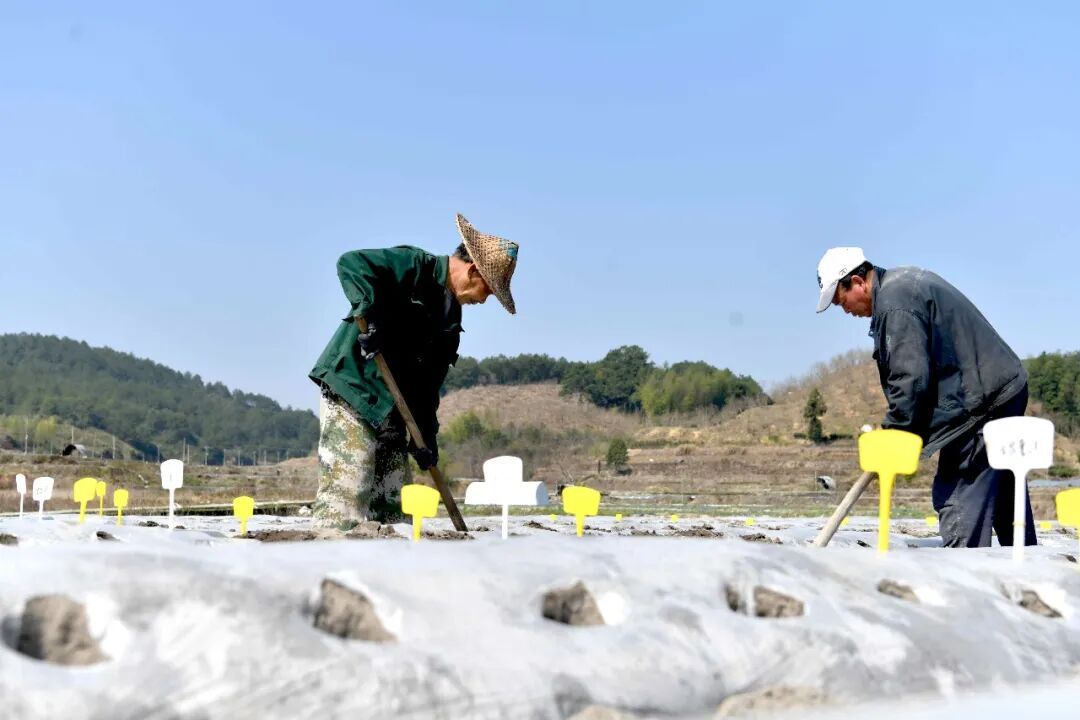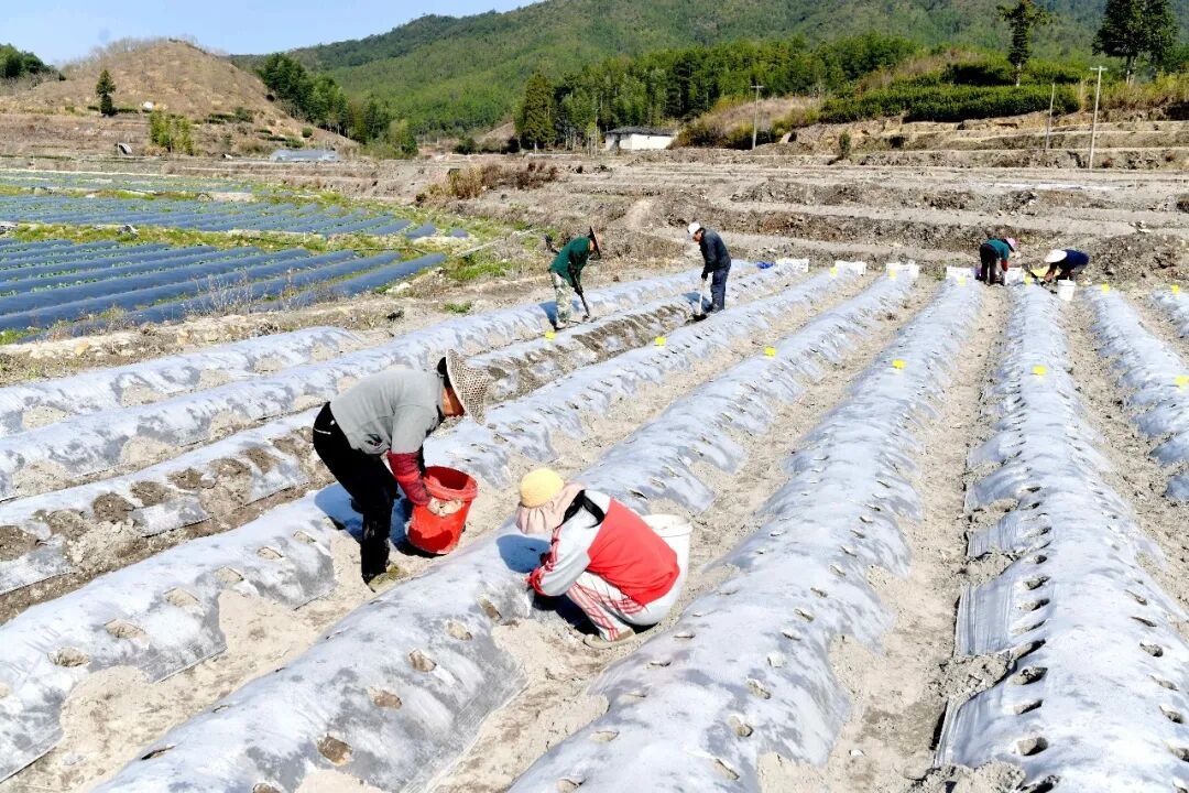 3月12日,政和县杨源乡大溪村洪门厝下的土豆新品种选育基地里,科研人员和当地农技干部正在开展划分试验小区、发放品种等工作。村民们在他们的指导下,有条不紊地放薯种、培土。
