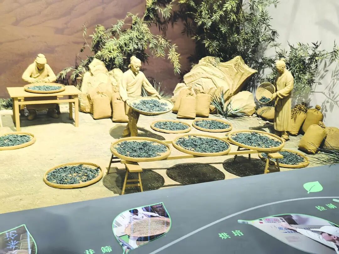 政和县博物馆还原展示的白茶制作工艺 政和,地处闽浙两省三市交会之所。早在距今7000多年前的新石器时代,便有先民在此开垦土地、繁衍生息,为今人留下石凿陶制的文明印记。当历史的车轮行至宋朝,这座置县仅百年的年轻县城迎来了“因茶得名第一县”的巨大转折,也在这百余年间与留名青史的大儒产生了深厚的渊源。 为何位于闽北的平凡小城,能在建县1000余年间,与这么多不一般的历史大事产生交集?本期文化版与您一同走进新近开放的政和县博物馆新馆,探索各式文物中蕴含的文人雅韵与历史流动。 因茶得名:特产赢佳名 走进政和县博物馆,一面栩栩如生的浮雕墙迎面展开,引来客步入厚重的历史长卷。爱茶如痴的宋徽宗赵佶、孝亲启贤的大儒朱熹、静谧灵秀的自然山水……看过这面浮雕墙,再进入展厅细品茶盏、瓷罐等一件件展陈文物,更能结合此地、此景、此人、此事的交织脉络,品味出文物保存流传至今的政和千年风貌。 政和,寓意“政通人和”。此地最初名为“关隶”。“政和”这一寓意美好的名称,是在建置近两百年后,才与这块土地联系起来。 政和初建置时,名为“关隶”。五代后晋天福六年(941)置关隶镇,宋咸平三年(1000)“升级”为关隶县,隶属建宁军(治所在今建瓯),将县治移至黄熊山麓,即如今的政和县熊山。 宋人喜茶,茶叶生产与茶文化均为潮流。当时,建安北苑(今建瓯东峰镇一带)生产的茶叶俏销,关隶县也属于北苑贡茶产区,辖区内有不少官、私茶焙。政和宋氏古谱《杂事记》记载,后周显德六年(959),族人宋炂、宋灼来到留源(今镇前湘源)开垦茶园,并于宋建隆三年(962)制作龙焙贡茶,经过建州“进御”,其后裔凭借一门手艺“以茶积富”。如今,在镇前镇下庄村仍可一睹两人创建的坑塘焙遗址风貌,宋淳熙年间的政和县令袁采留下《龙焙试茶》一诗,称赞此处好茶“袅袅茗香笼凤阁”,以石刻的形式向后人证明政和好茶的悠久历史。 关隶在众多茶产地中脱颖而出的关键,在于境内的众多野生茶树。这些野枞培育而成的白茶在当时的斗茶赛中屡屡夺得头筹,被督造贡茶的官员们视作上好贡品。在公元1107年成书的《大观茶论》中,钟爱品茶的宋徽宗赵佶还曾专门着墨于白茶的制作工艺,感叹其“自为一种,与常茶不同”,稀有少得,“须制造精微,运度得宜,则表里昭彻,如玉之在璞,它无与伦也”。 宋政和五年(1115),关隶县进贡的白茶极品“白毫银针”经历千里跋涉,被端上这位爱茶帝王的茶桌。一闻清香,再品甘甜,回味无穷,凝聚灵山秀水精华的关隶茶深得宋徽宗喜爱。赵佶一纸圣旨,将正在使用的年号“政和”赐予关隶县作为县名,以表彰其茶叶的卓越品质。 凭借一抹茶香,政和白茶不仅征服了品茶无数的宋徽宗,为家乡开启以年号为名的传奇篇章,也在人间烟火中留下了深刻的印记。 在博物馆展区内,陈列着一套由托盘和盏组成的青白釉葵口瓷托盏。盏口沿呈六葵瓣形状,腹内壁有六道出筋纹;托盘则为七瓣葵口,宽沿如同包裹盏体般折起。托盏旁,是一大一小两只青白釉瓷执壶,其中大者有21.3厘米高,腹部刻有精美的花卉纹样,用于出水的圆管状“流”细长微弯。两宋时期,点茶之风兴盛,执壶的细长流正适合聚拢水流,便于斗茶师将水迅速、准确地注入茶盏。透过这几件器具,仿佛能够从柔和的青白釉色下,感受到传续千年的宋人雅韵。 先贤过化:大儒入闽地 政和盛产白茶等山珍,更是出贤德、聚英才的灵地。大儒朱熹所在的朱氏家族,入闽第一站就是政和。 宋政和八年(1118),朱熹之父朱松进士及第,被朝廷授予政和县尉一职。为了忠孝两全,身为家族长子的朱松做出了一个重大决定——带上全家人一同赴闽上任。朱松携父母二人、妻子、四个弟弟妹妹从家乡婺源出发,一家八口人历经长途跋涉,终于抵达政和定居。 到任后,朱松不仅尽职尽责完成县尉工作,还创办起云根书院,与父亲朱森共同讲学,开创政和书院教育先河,被百姓称赞“既民之父母,又民之师保也”。闲暇之余,父子二人常造访政和县护国寺,还曾题诗《书护国上方》,以一句“为问脱靴吟芍药,何如煮石对梅花”,吟诵在佛寺烹茶赏梅的雅韵。 宋宣和二年(1120),朱森便撒手人寰。迫于时势与家境,朱松一时无法将父亲灵柩运回家乡安葬,只能暂时停灵于护国寺内,在政和城内解官守孝。三年后,守孝期满,朱松正式将父亲安葬在护国寺西侧莲花峰下。在政和县铁山镇凤林村深处,从庄严静穆的护国寺旁拾级而上,便可见朱森墓坐落于树木环抱之间,守望这片土地。 宋建炎四年(1130),朱松妻子祝夫人产下第三子,取名朱熹。朱熹5岁时,祖母程夫人去世,葬于政和星溪。守丧期间,小朱熹在其父创办的星溪书院接受启蒙教育,读书明理,更在父亲言传身教中,逐步构建起对孝道的认识,成为孝道的践行者。 长大后,朱熹与政和的缘分并未断绝。朱熹成年后,经常回到政和祭拜祖辈,继承先人的精神,到云根书院、星溪书院讲学育人。朱家三代人的“教育接力”,为当地培育了一批批人才,政和也因此有了“先贤过化之乡”的美名。 政和县博物馆内,一口古朴厚重的铜钟沉稳地陈列在展厅中央。乍一看,这口铜钟通体并无华丽精美的纹饰,仅有简约的线框形浮纹。但走近细观,便可在钟体上看到一列列铭文。“此护国寺钟也……”顺着刻痕读铭文,铜钟的“身世”逐渐明晰:一口铸于五代闽国永