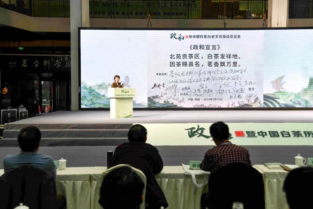 ▲茶文化座谈交流会现场 会上,与会专家学者结合现有史料,经座谈交流形成“北苑贡茶区,白茶发祥地;因茶赐县名,茗香飘万里” 的共识,并正式发布《政和宣言》,为后续政和白茶文化的深度研究与持续发展奠定了坚实基础。 本次活动由中华全国供销合作总社杭州茶叶研究所、浙江大学茶叶研究所指导,政和县海峡茶业交流协会承办,《中华合作时报·茶周刊》、中国白茶城、福建省隆合茶业有限公司、福建省政和云根茶业有限公司、福建政和瑞茗茶业有限公司、福建大与实业有限公司协办。(王诗琪 余长青 魏春柳 廖文鹏) |