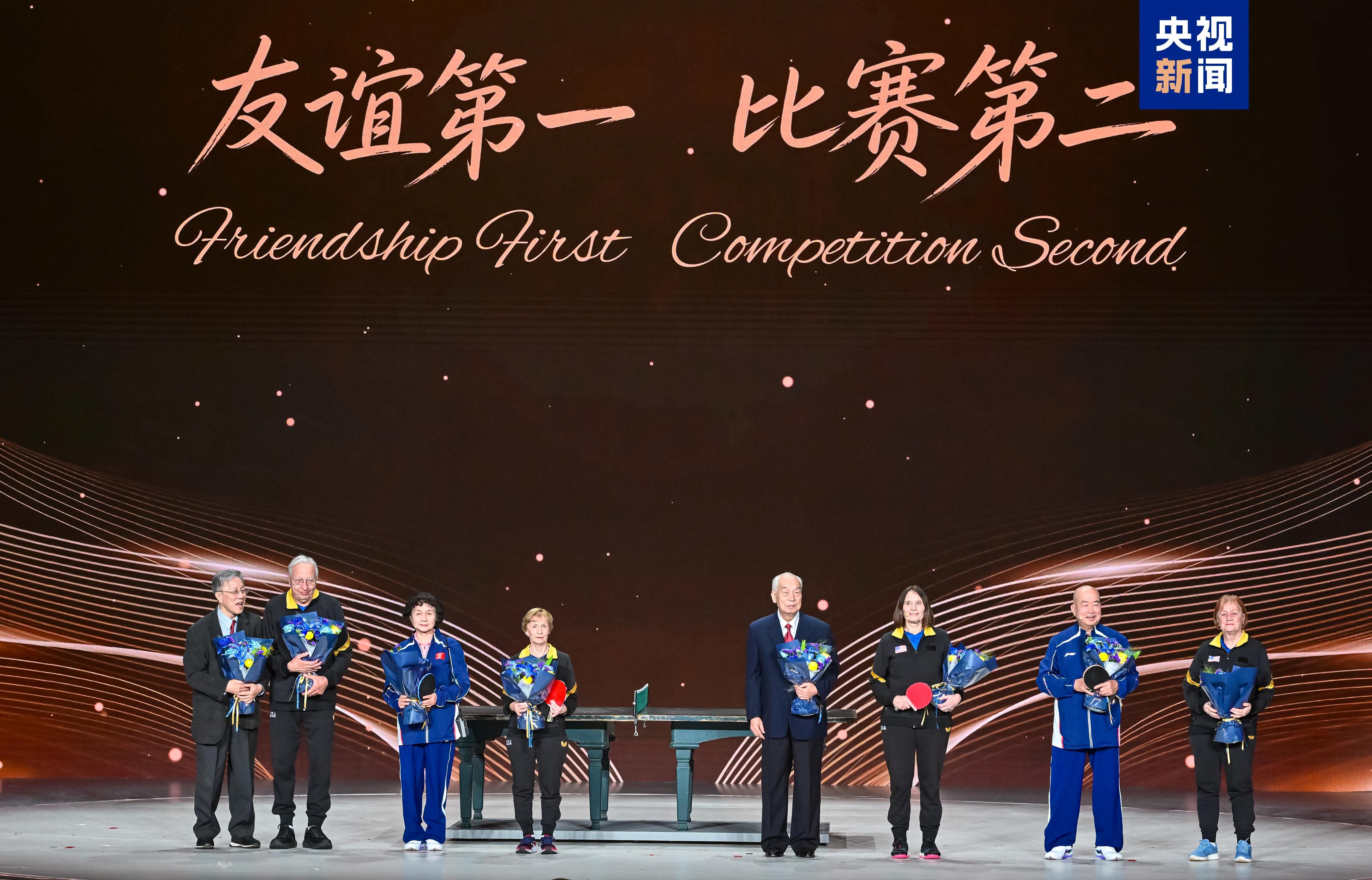 △2026年4月10日,“乒乓外交”亲历者出席中美“乒乓外交”55周年纪念大会。 聆听习近平主席的贺信,当年的美国乒乓球队访华团成员朱迪·霍夫罗斯特表示:“在当下,相互理解与对话比任何时候都更加重要,希望我们能将‘乒乓外交’精神继续传承,在两国人民间传递温情,增进理解。” 一个稳定、健康、可持续的中美关系符合两国人民的共同利益,也符合国际社会的共同期待。 在交流合作中相知相亲 “中美关系的根基由人民浇筑,未来靠青年创造。”习近平主席在贺信中这样勉励两国各界人士特别是青年一代。 多年来,习近平主席高度重视并亲自推动中美人民友好交往,特别关心中美青少年的交流。 2015年,习近平主席访美期间,向美国塔科马市林肯中学赠送了介绍中国的图书、乒乓球桌以及球具,鼓励两国青少年加强交流,增进友谊,继续为中美关系这座大厦添砖加瓦。 此次,林肯中学的学生也来到中国,奔赴以“乒乓”为名的相聚。林肯中学学生安东尼说:“习主席的贺信给我们传递了一个强有力的信息,让我们坚信彼此学习、相互理解就能让人心贴得更近。我要把我亲身体验所经历的一切,把我看到的真实的、充满活力的中国,讲给我家乡的朋友们听。”
