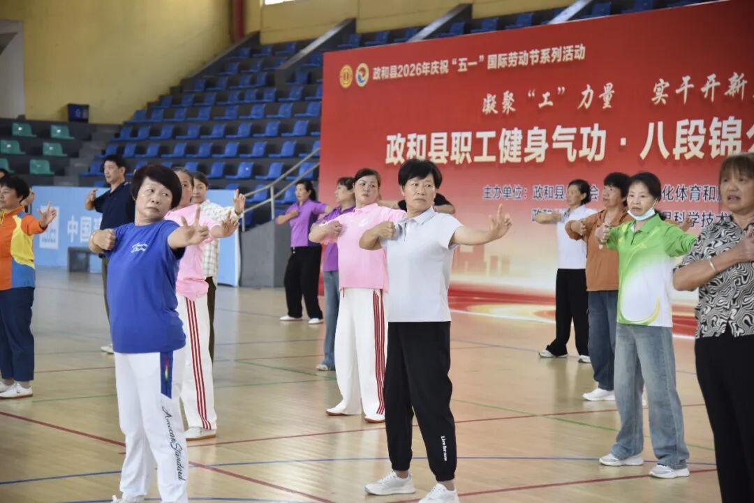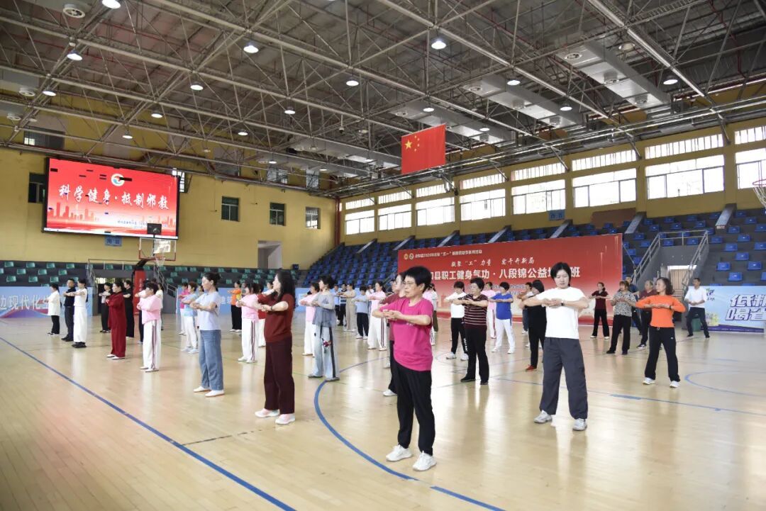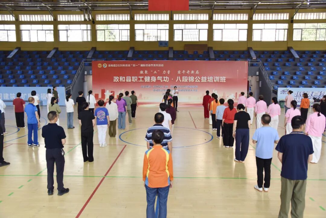 4月28日,由县总工会、县文化体育和旅游局、县卫生健康局、县科学技术协会联合主办的职工健身气功・八段锦公益培训,在政和县体育馆开班。